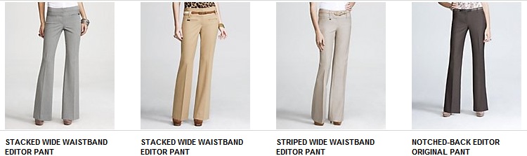 Under those tops, I always have the Editor pants from Express. I've searched low and high and these are the pants for me. No more searching. I have them in various dark neutral colors.