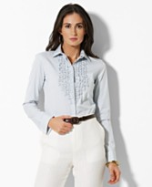 Top of that list is the magical Macys. I tend to favor bespoke button-down shirts for work. For this look, I've found Ralph Lauren shirts sold at Macys to be the best fit.